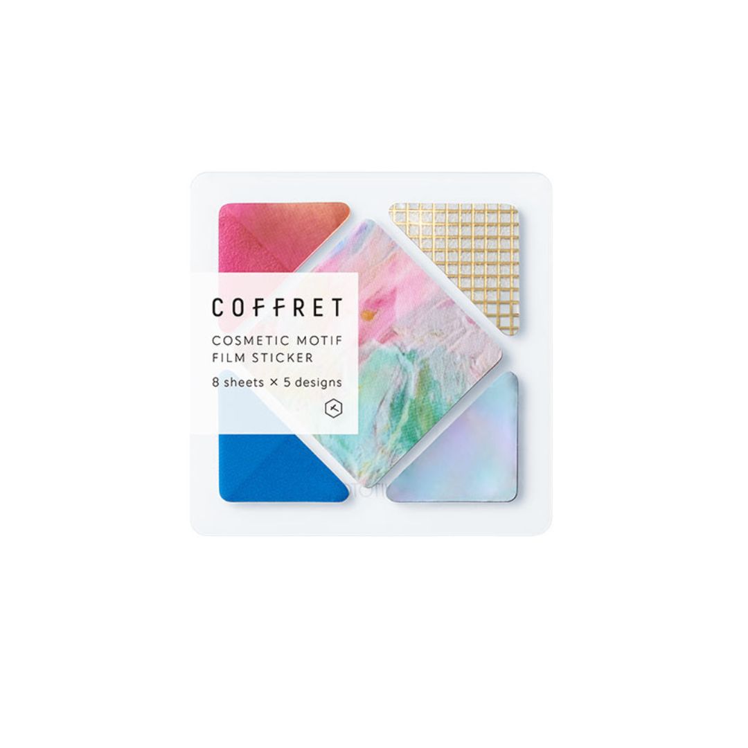 Coffret is a translucent film sticker that reflects light beautifully and comes in fascinating, subtle colours. You can decorate with them freely, creating layered or side-by-side designs like doing your makeup.